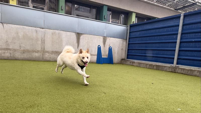 He was a little worried when he first arrived but quickly came out of his shell and showed his playful personality.