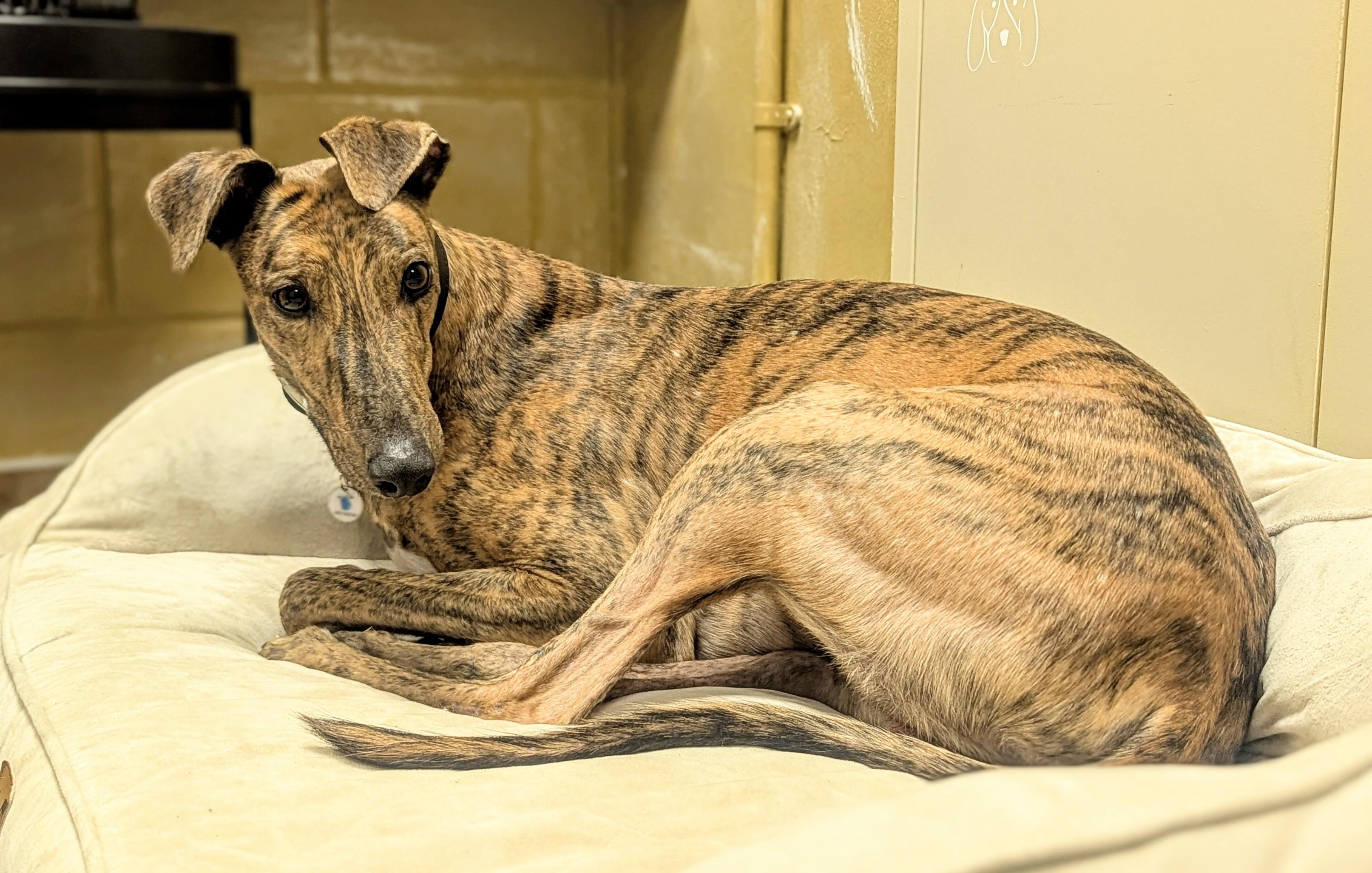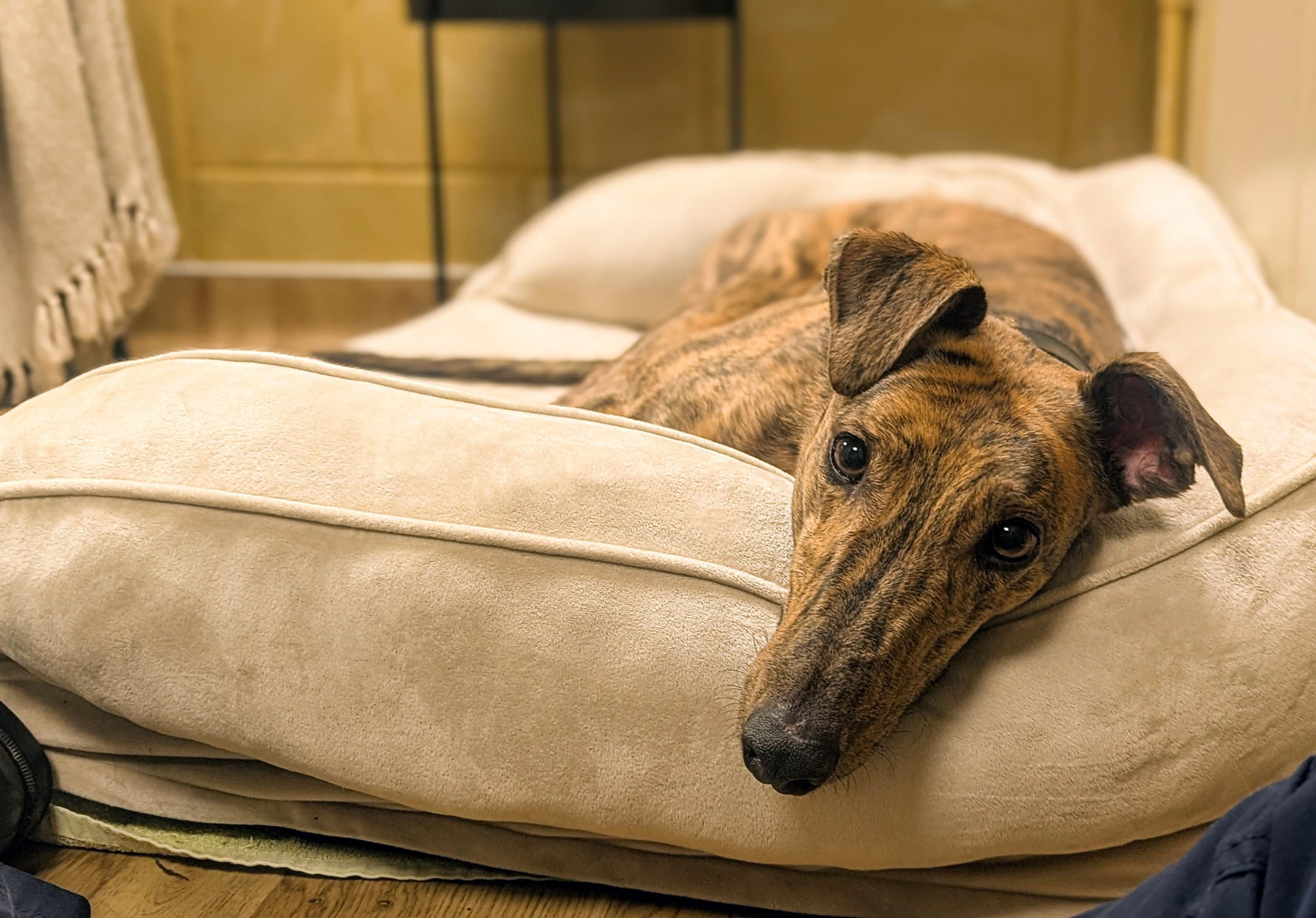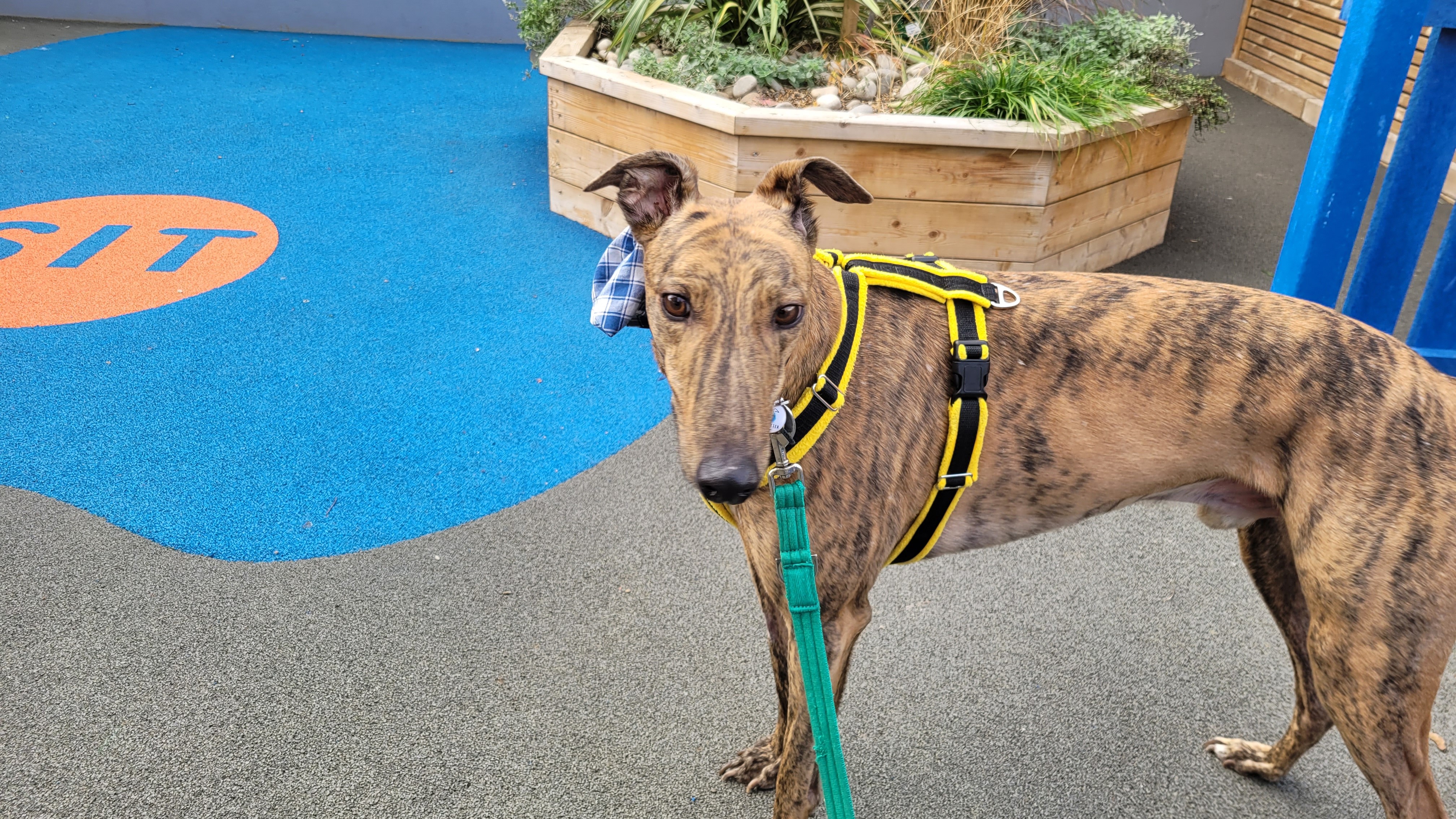 He would thrive in a calm, adult-only home with experienced owners who understand greyhounds.