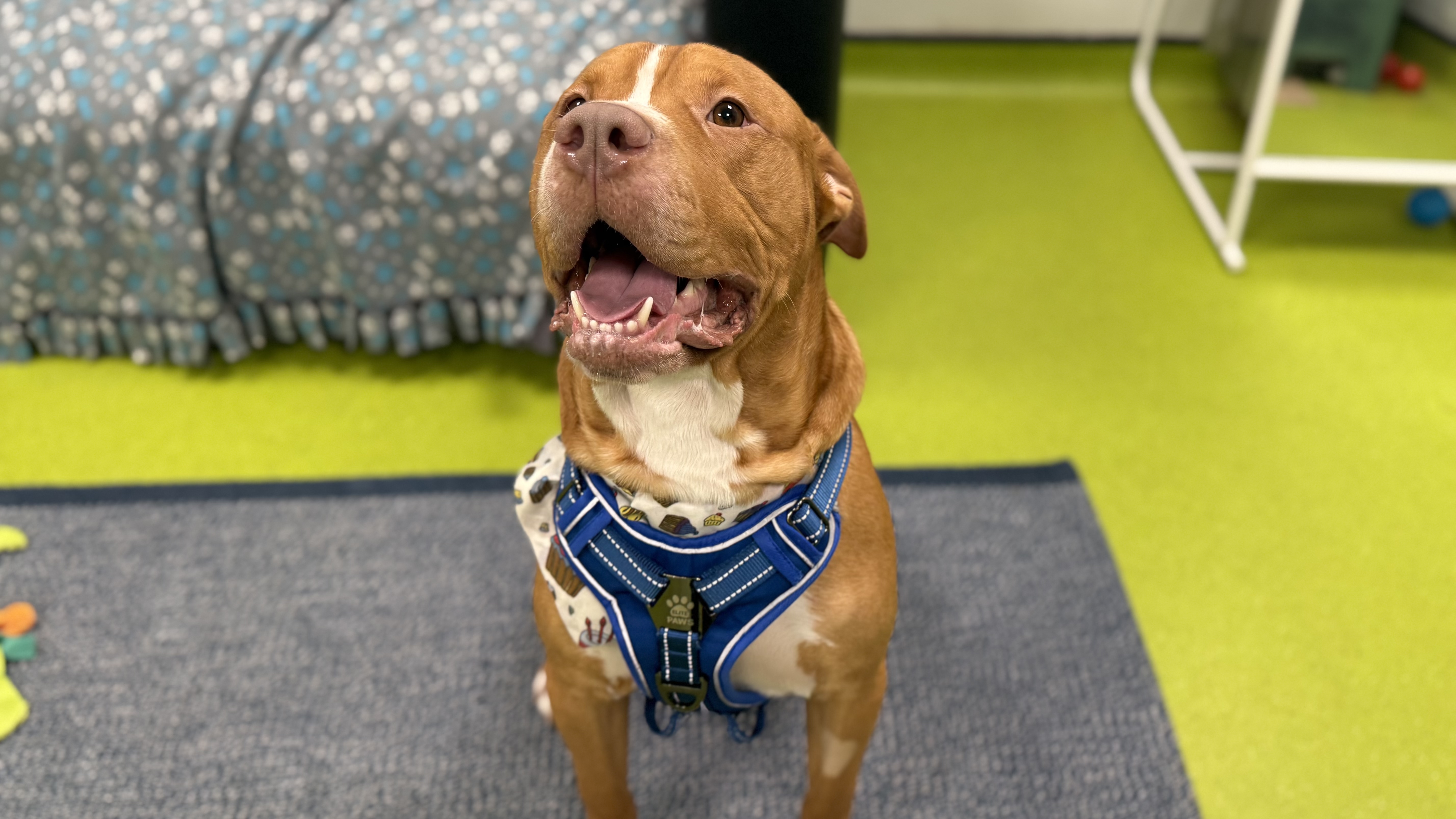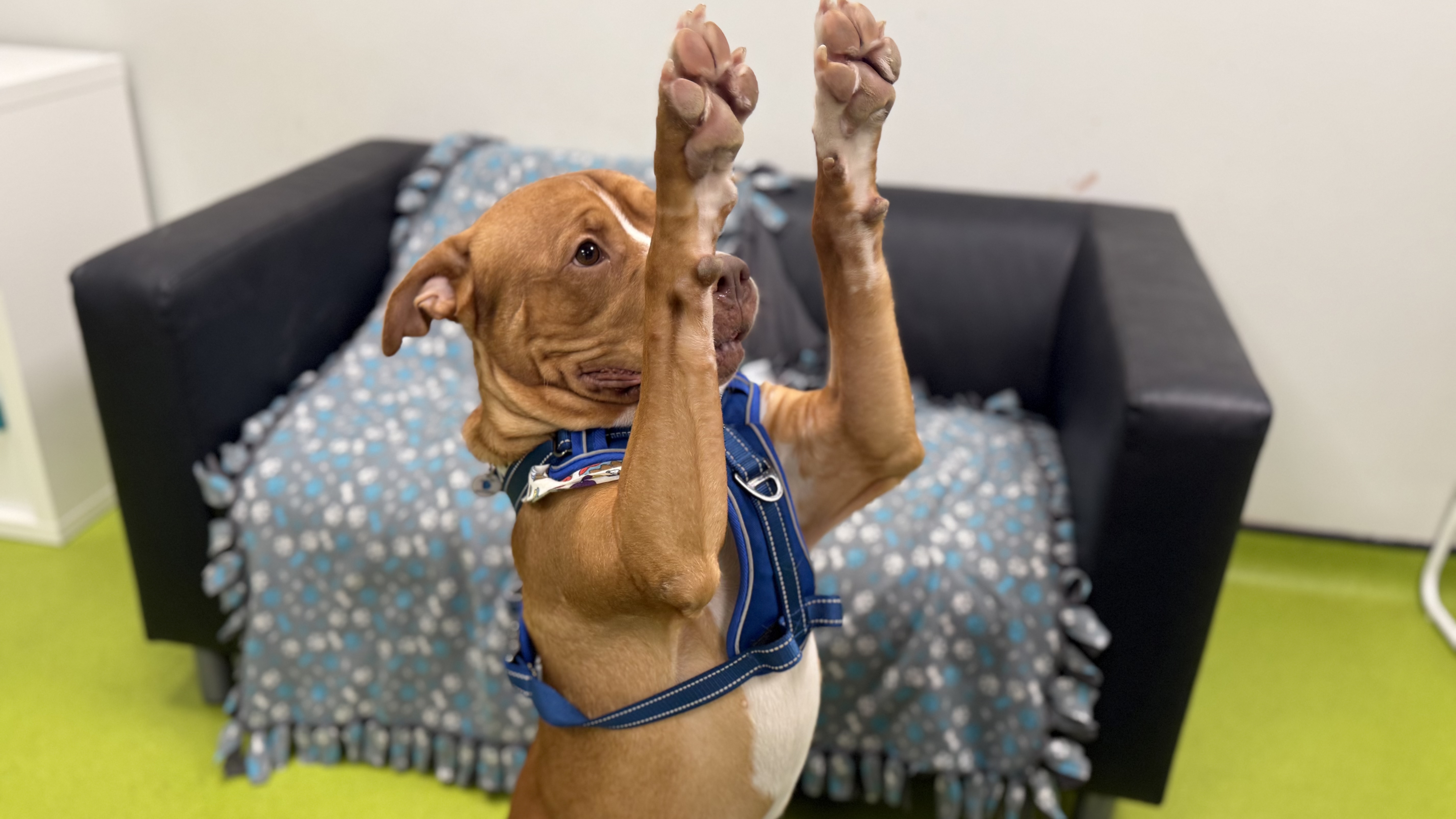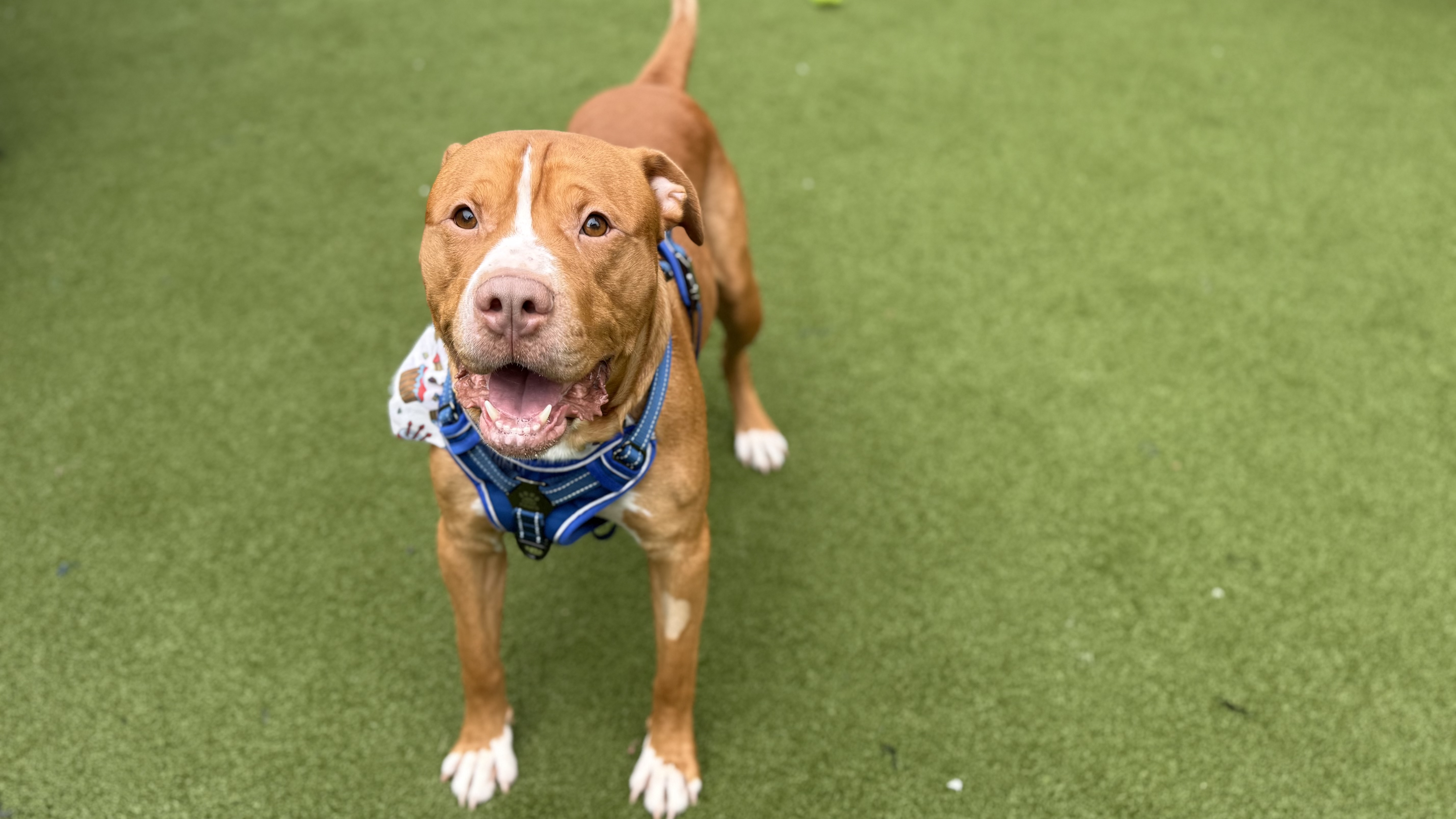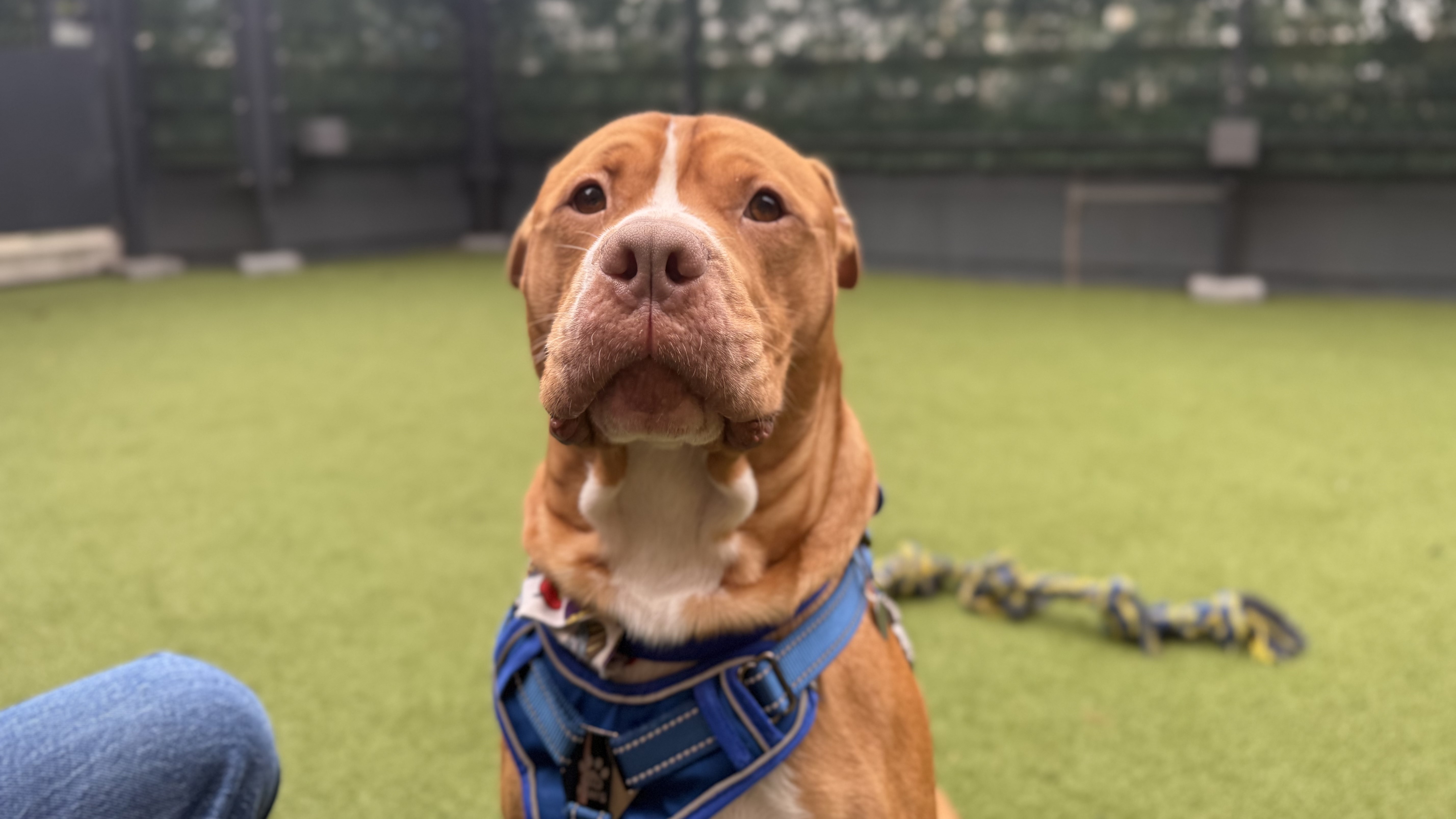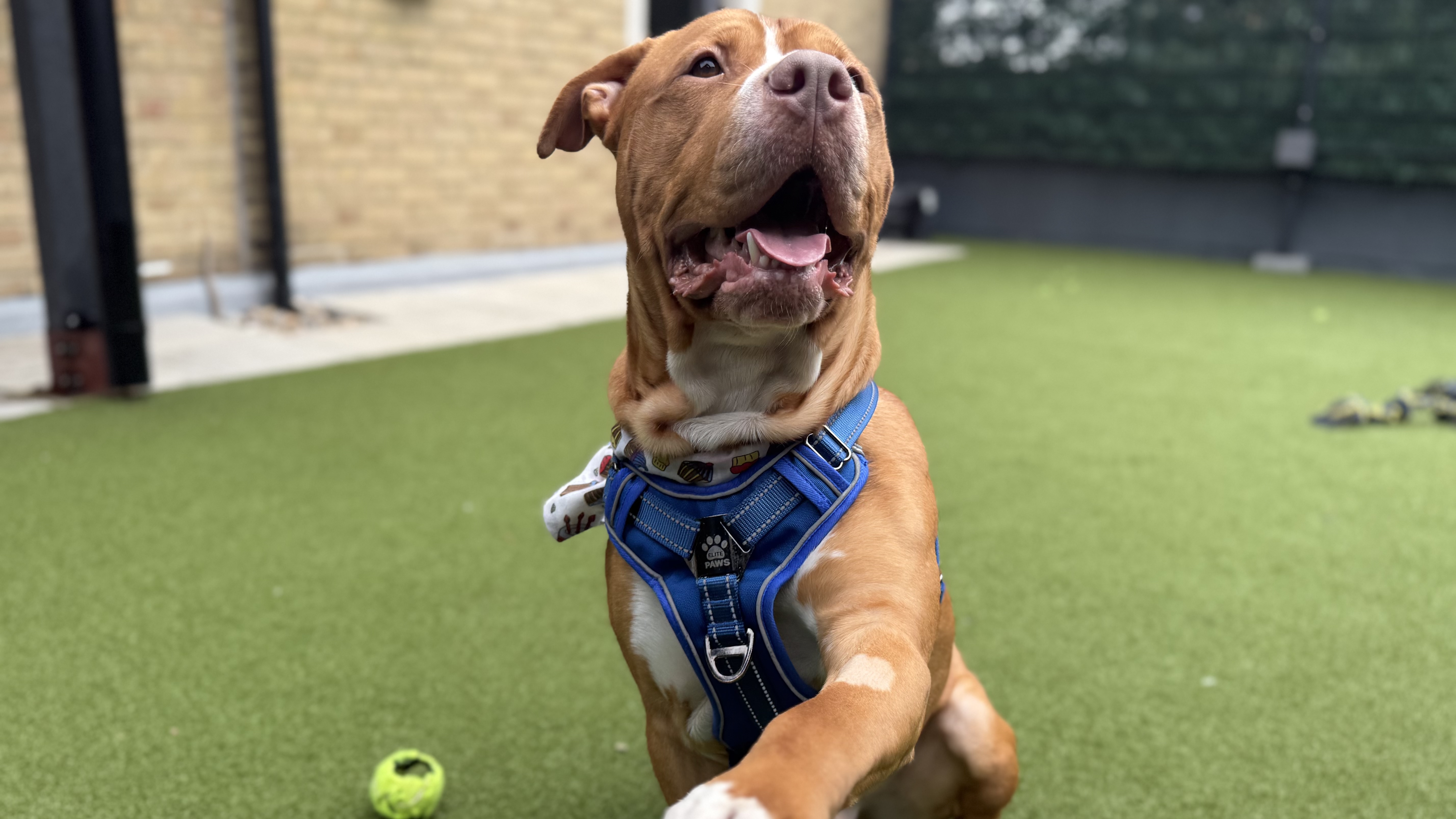 Tucker is an American Bulldog x Shar-Pei who arrived at Battersea as a stray. Sadly this means we have very little information on his first 3 years of life. The wardens described Tucker as being very loving and affectionate, knowing lots of tricks and he would jump on their sofa and wait for his harness to be put on.