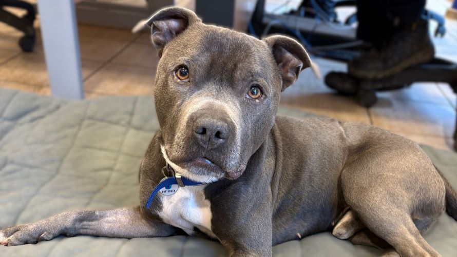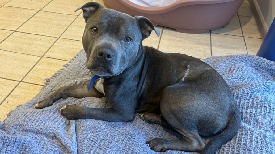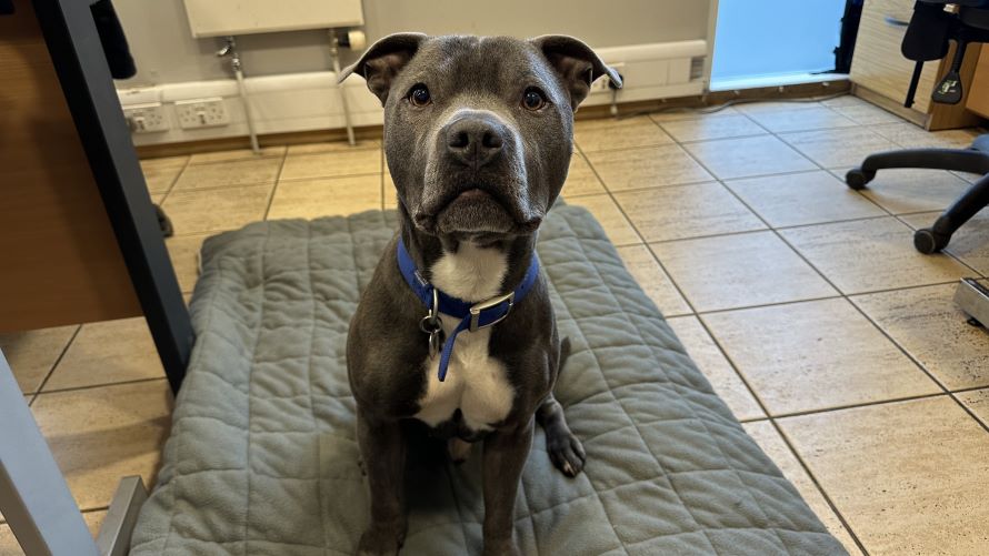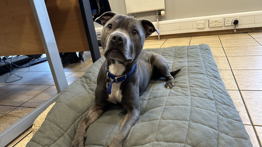 Warren is an inquisitive and affectionate Staffordshire Bull Terrier cross. He loves to play with toys and be the centre of attention with his favourite people. He is based at our Old Windsor site.