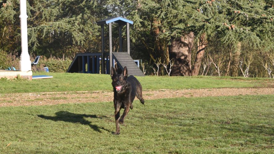Wilson has picked up lots of basic training since arriving with us and knows sit, paw, 'middle' to name a few. He enjoys using his brain and the breed need plenty of activities to keep them busy and occupied.