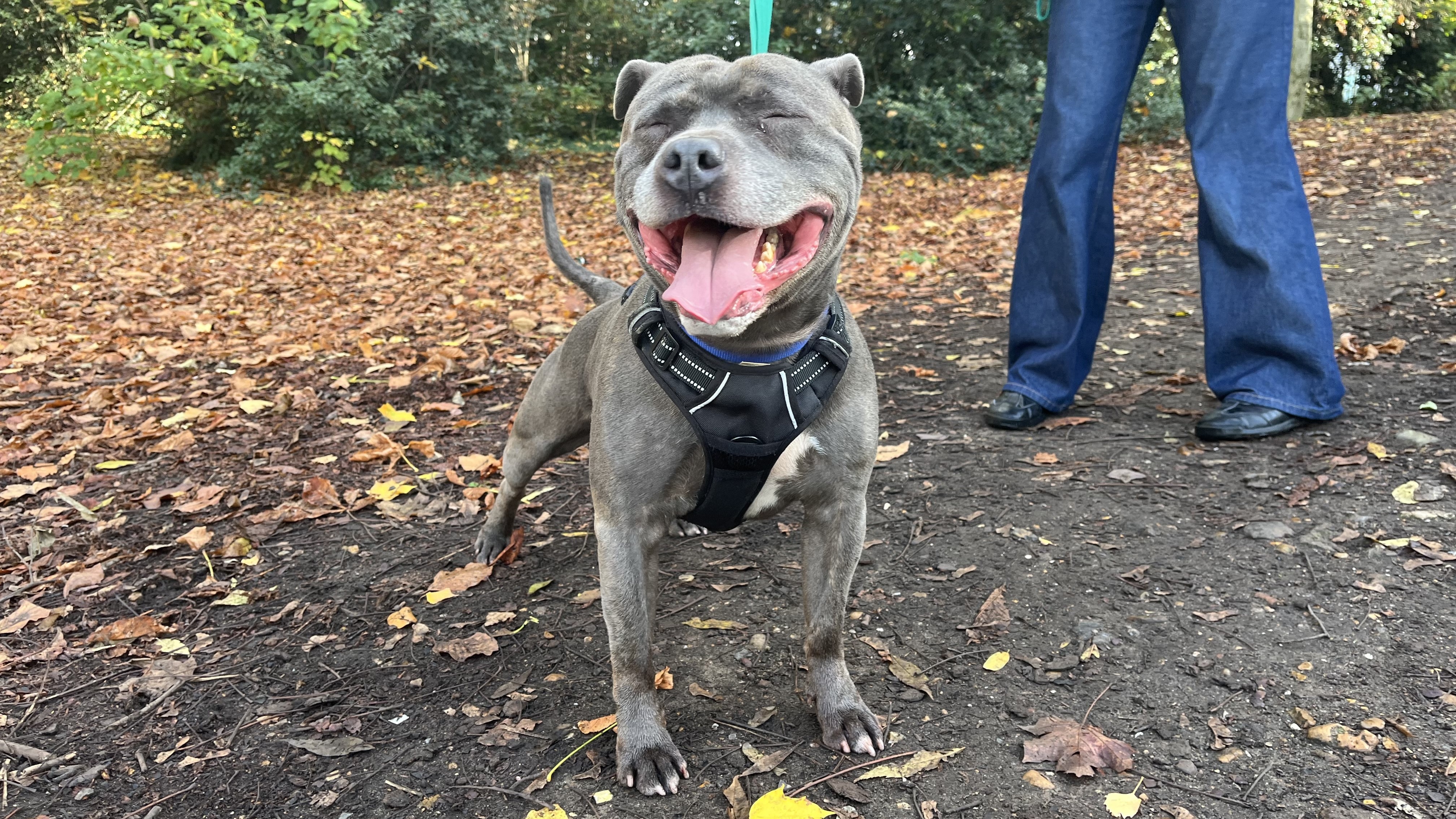 He has a lovely history in his previous home, being an excitable but friendly lad with people. Here at Battersea we have seen the same loving chap who craves attention but is finding kennel life very stressful.